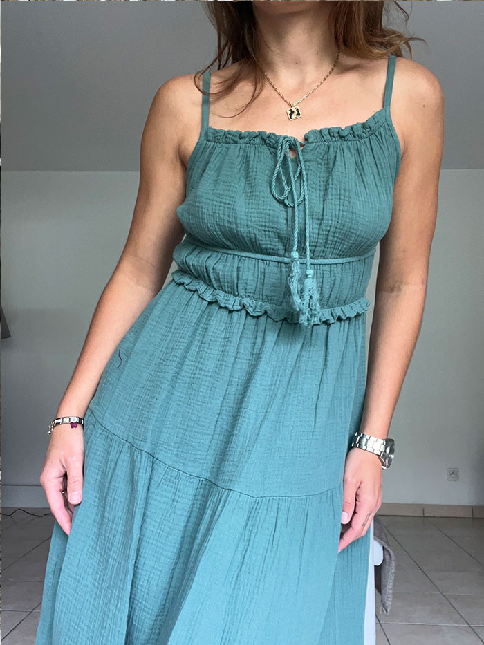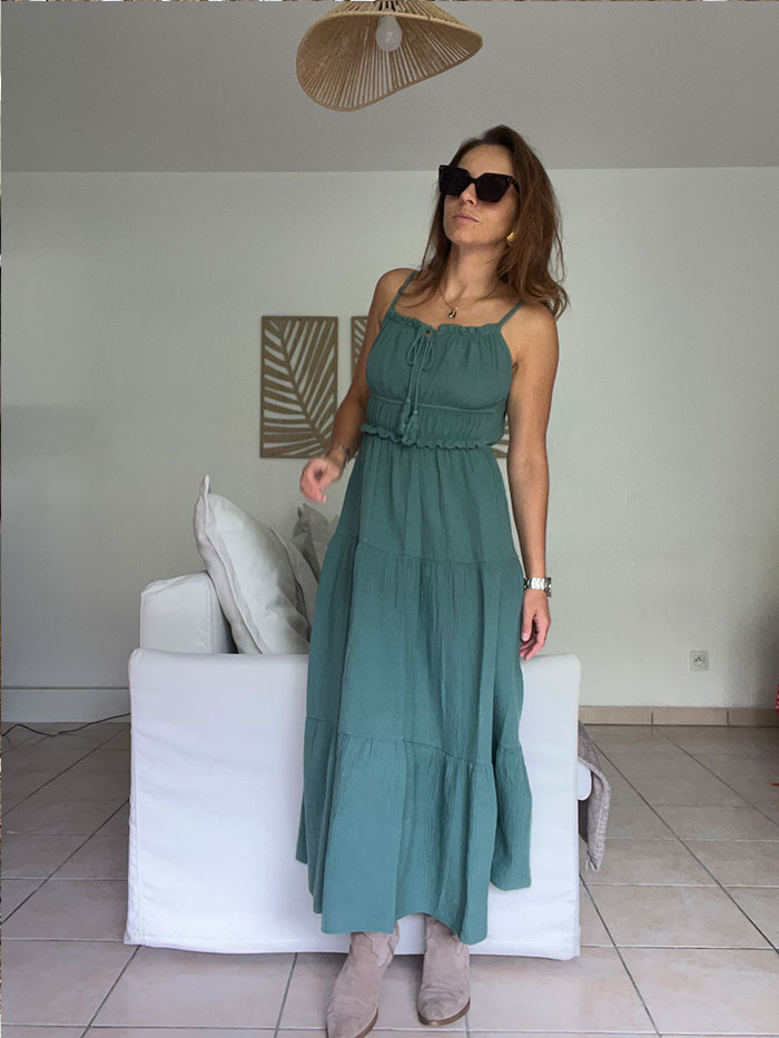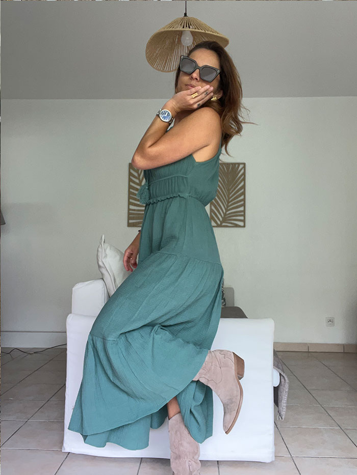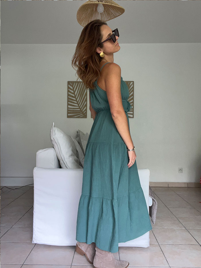 La robe Iris, style bohème, est un robe qui s’adapte à toutes le morphologie. Cintrée à la taille, elle viendra parfaire votre silhouette.